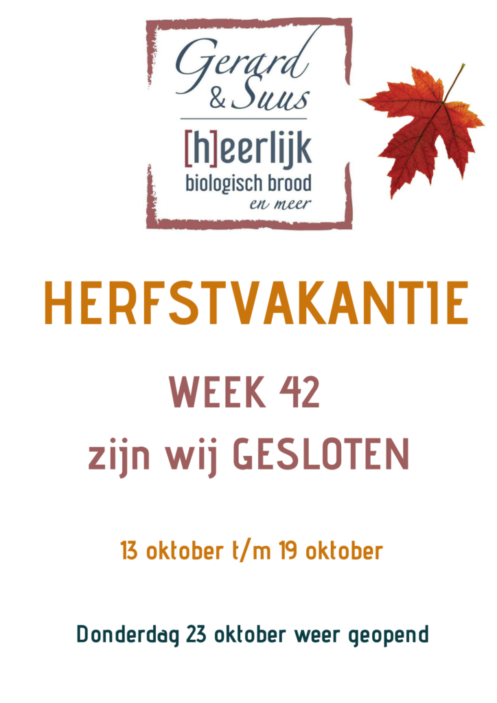 We zijn vanaf 7 augustus nog open op de donderdag, de vrijdag en de zaterdag. De overige dagen gebruiken we voor de voorbereidingen, administratie, alles wat er verder bij komt kijken en hopelijk ook hier en daar een uurtje vrij. Op dit moment werken Gerard, Suus en Corianne alle drie tenminste 80 uur per week en dat is een beetje teveel van het goede. Zeker ook omdat Gerard al pensioen krijgt en hij graag alle kennis die hij in zijn bakkersleven heeft verzameld niet alleen door wil geven in onze bakkerij, maar ook daarbuiten.